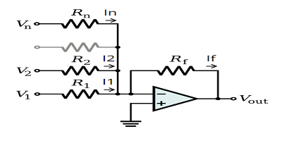 V out = -R f   1 / R 1 + V 2 / R 2 +…+ V n / R n