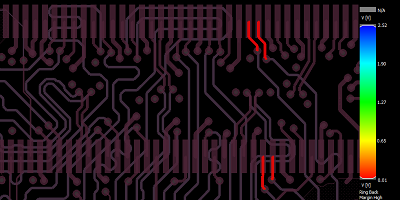 首先,選擇反射工作流和要檢查的網(wǎng)絡(luò)。選擇網(wǎng)絡(luò)后,單擊開始分析以開始仿真。模擬器完成后,您可以單擊反射視覺以查看熱圖,該熱圖標(biāo)記選定網(wǎng)絡(luò)中反射的位置。您也可以單擊反射表以查看特定的過沖/下沖值及其在面板中的坐標(biāo)。由于我們正在處理此板上的DDR,因此可以將這些值與反射表中的JEDEC規(guī)范進(jìn)行比較。