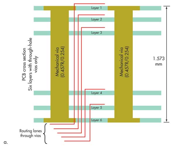 4.此示例顯示了一個布局/平面圖,這將使布線更加困難且成本更高,因為它需要更多的物理位置用于信號走線。